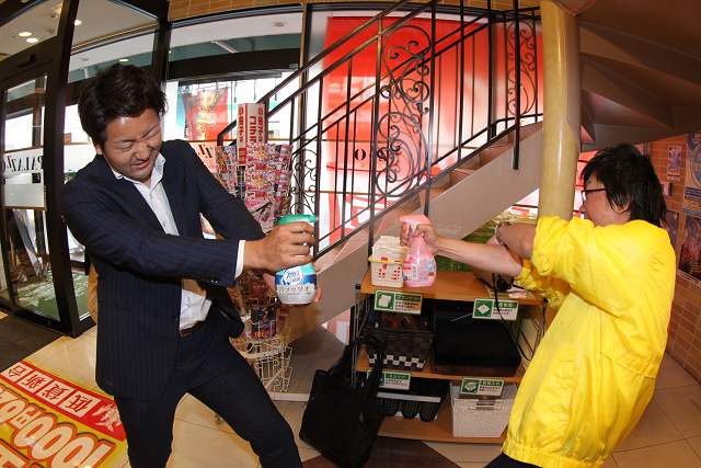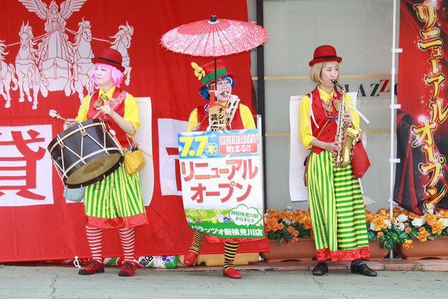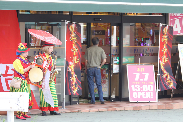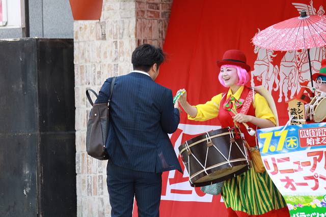 さらに駅前、店舗前とチンドン屋さんが往来を行きかう老若男女にチラシを配り、見事来店するファンも多数。
