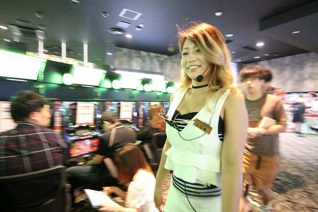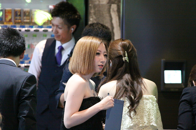 ホールスタッフぅのフロア&フロントガールは、白のオフショルダーにデニムのショートパンツや、花柄のセットアップ姿の娘もいて斬新だ。