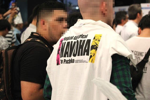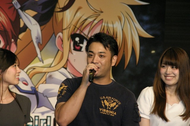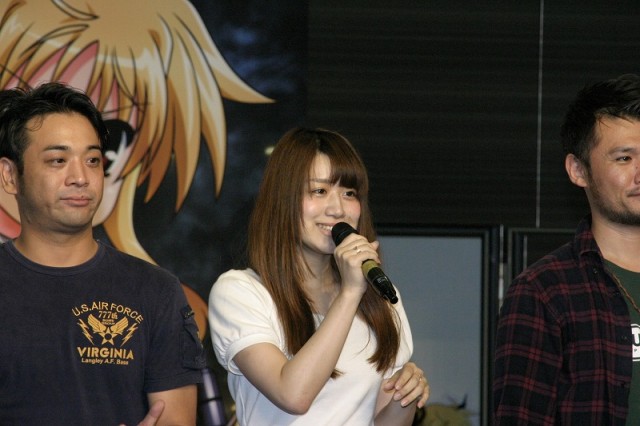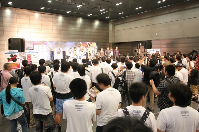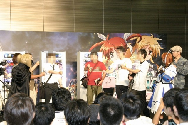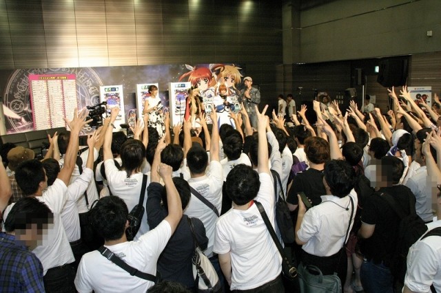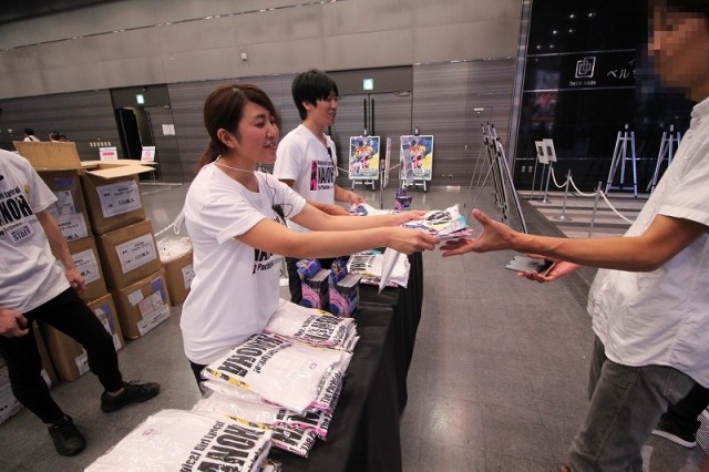 じゃんけん大会は、無料配布の限定Tシャツにレイヤー2人のサインを入れてプレゼント。参加者の気迫に2人は圧され気味(笑)