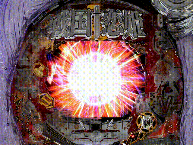 液晶演出だけでなく、アナログな玉の動きにも注目。液晶手前・中央には「合戦ステージ」を搭載。