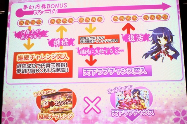 また、継続チャレンジに漏れても、焦るにはまだ早い!!復活をかけた「天下ラブチャンス」も設けられている。こちらに見事成功することが出来れば、夢幻円舞へと復帰することができる!!