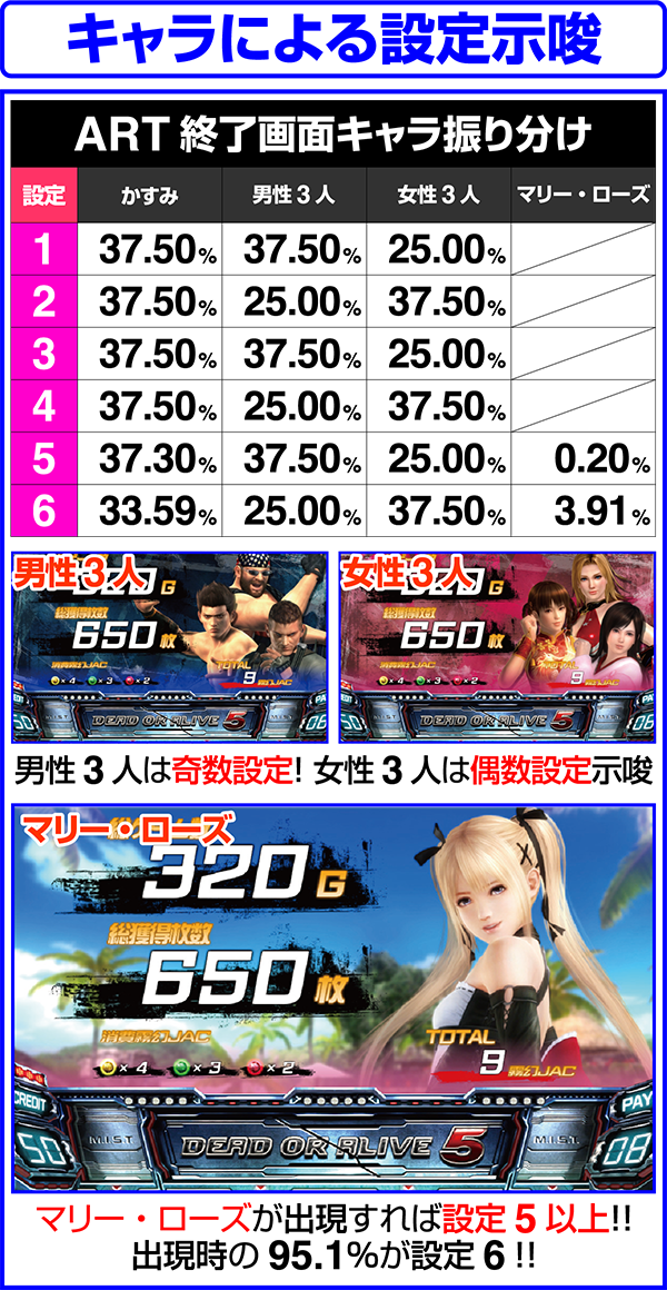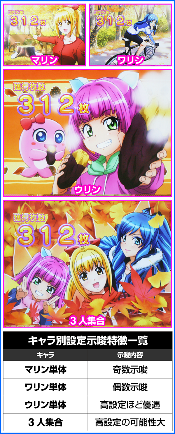 BIG開始時に、いつものラウンド以外を選択した際の終了画面はRTCとなっており、実際の月に対応した画面が表示される。3人集合+月矛盾の画面が表示されれば設定4以上が確定。