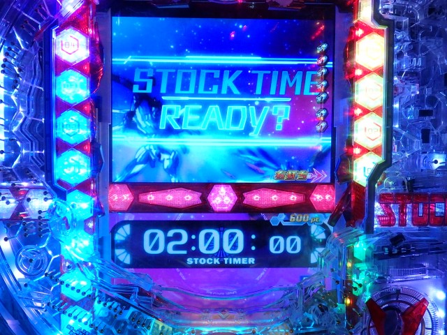 経費削減の検証のためにも早い当りが欲しいところですが、ほぼ確率通り350回転過ぎに図柄揃い大当り。まずは休ませずに普通にストックタイムをこなします。