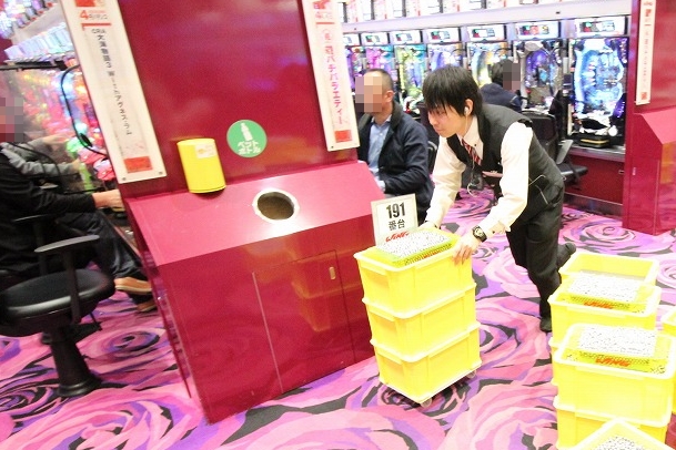 この紳士以外にも大量出玉のお客さんが入れ替わり立ち替わり回転していく。この店内の活気は凄まじい。