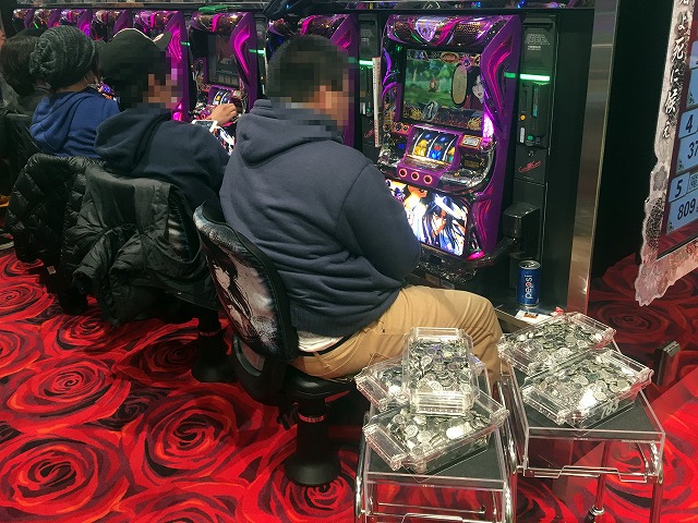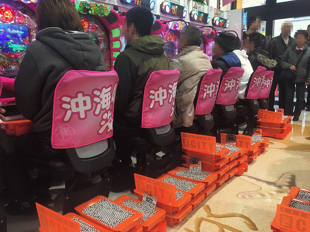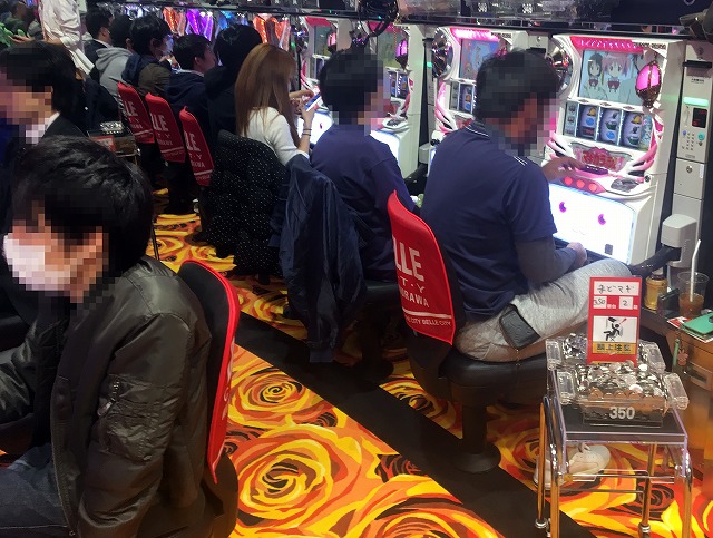 「CRスーパー海物語IN沖縄4MTC」に至っては、まさに玉箱の絨毯!が敷かれていた。ギャラリーも数多く発生しているのにも納得ですな。