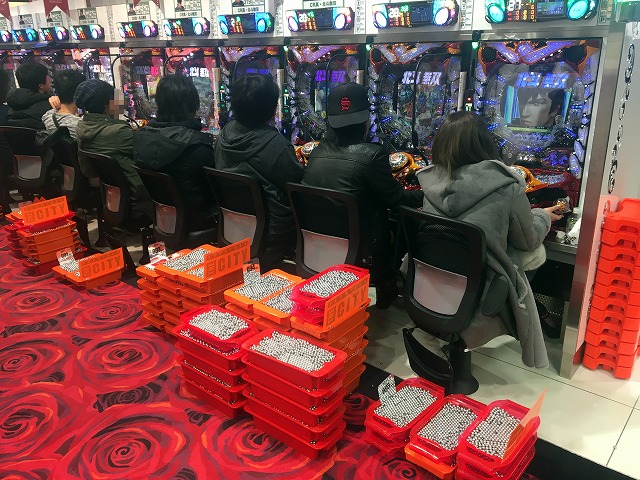 パチスロに負けない盛況ぶりだ。特に「CR牙狼 魔戒ノ花XX」の某台なんて、積み上げた玉箱を数えるのが“羨ましすぎて”嫌になるほど。しかも、よくよくその台を観察していると、一定以上の玉箱に関しては、先にレシートと交換しているではないか、、、やはりキングオブマックスの称号は伊達ではなかった。この年末で消えゆく同機の運命を想うと、何気に感慨深げな光景である。