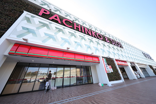 今回この巨艦店には、併設してコンビニエンスストアや飲食店も建物内に設置されており、遊技に飲食と1日中快適に過ごせる。