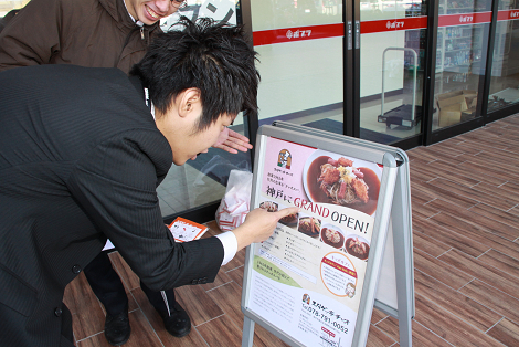 この日はオープンのお祝いで、オーギヤ出口に割引券を配布しており、早速手にする同行していたDMM播州担当のカトケン。