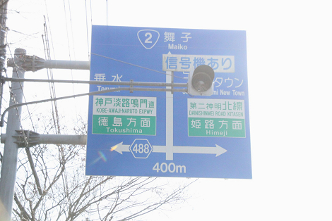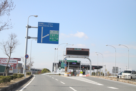 学園都市駅、芸工大前を通過、国道2号淡路方面へ。
