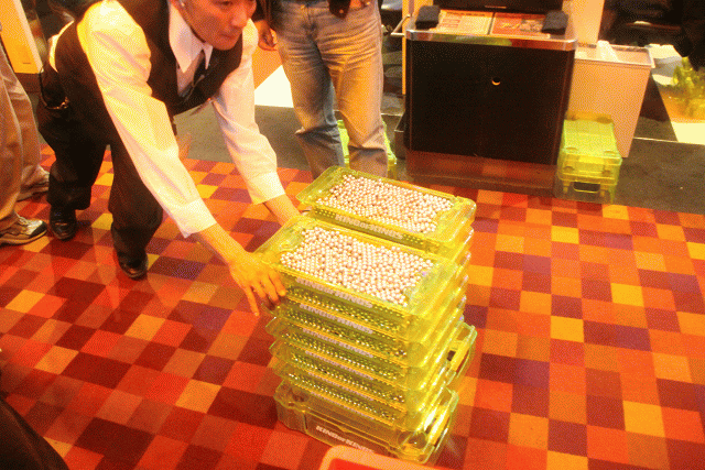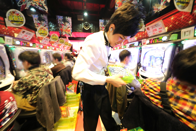 そして、エンドレスでドル箱を積んでは運び、メダルを、玉を計数!