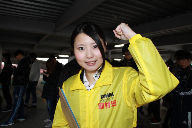 コンパニオンのオネイさんも、スマイル全開での応援!