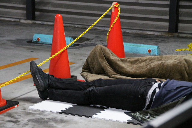 今、横たわっているのは整理券配布を終えて一息ついているファンらしい。きっと、いい番号が受け取れたに違いない!