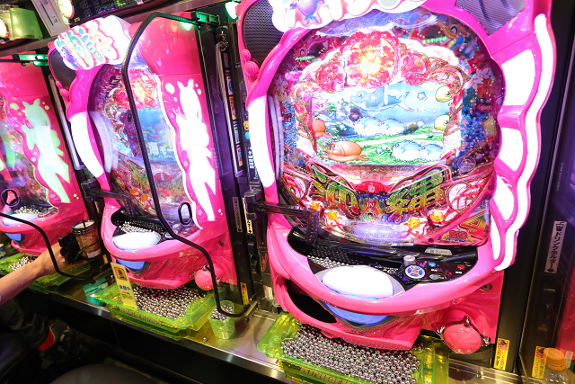 気を取り直して店内に戻ると120台も揃えられている、定番・鉄板の『CRスーパー海物語IN沖縄4MTC』も軒並みマリンちゃん が「おめでとう」をまるでシュプレヒコールのようにハモらせている!