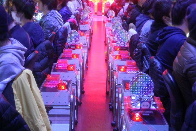 すでに、足の踏み場もないくらいにパチンコもパチスロもドル箱が積まれ積まれて熱狂の嵐!