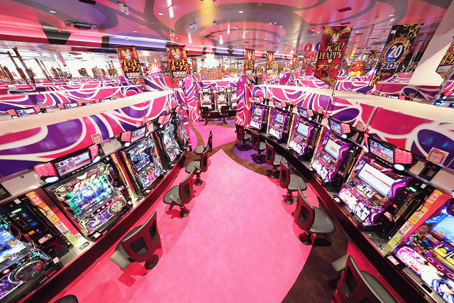 全台・各台計数機標準装備ということもあって通路も広々。スタッフも軽やかな足取りで笑顔の対応に駆け回る!!