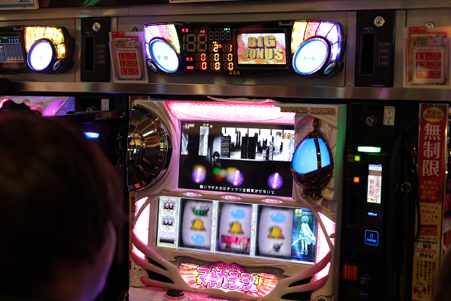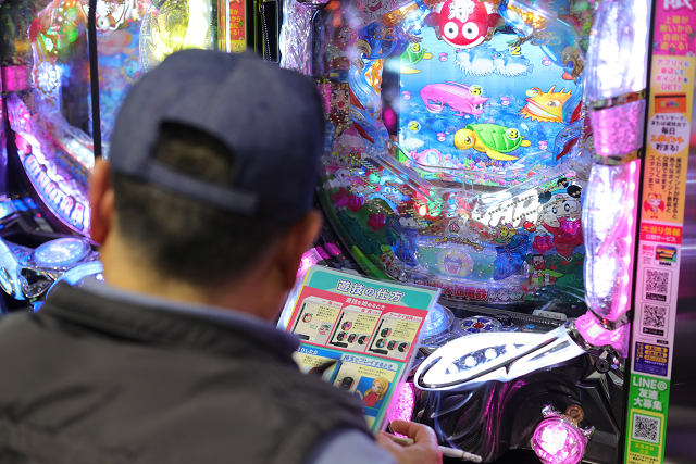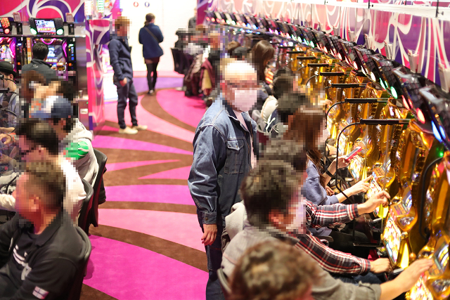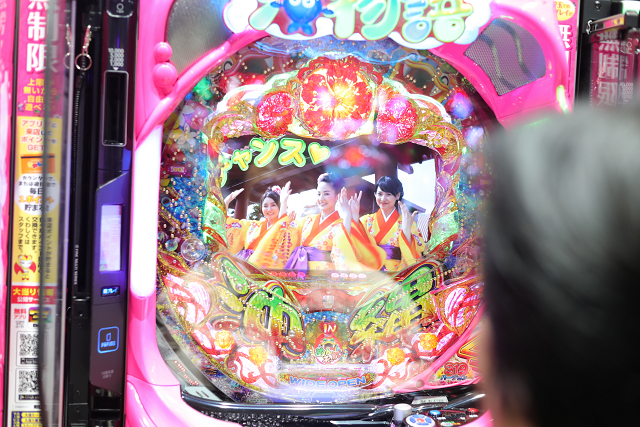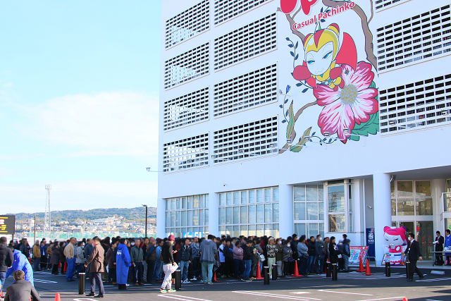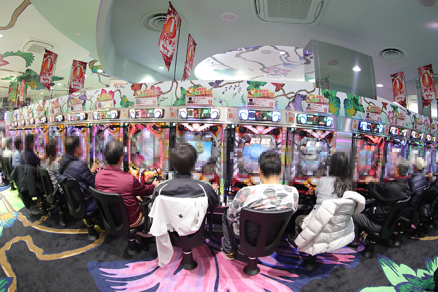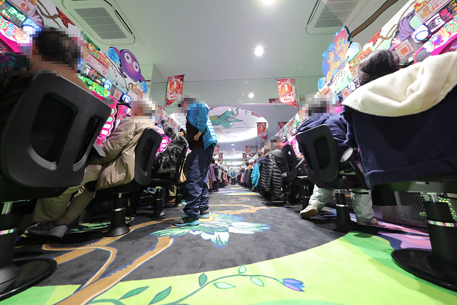 本日の狙い台を確保できたファンは、安堵と喜びの笑みを浮かべ、『マイジャグラーIII』にしようか、『ニューアイムジャグラーEX‐KA』にすべきか、はたまた『CR花の慶次X~雲のかなたに~』『ぱちんこCR真・北斗無双』にしようかと思案するファンもちらほら。