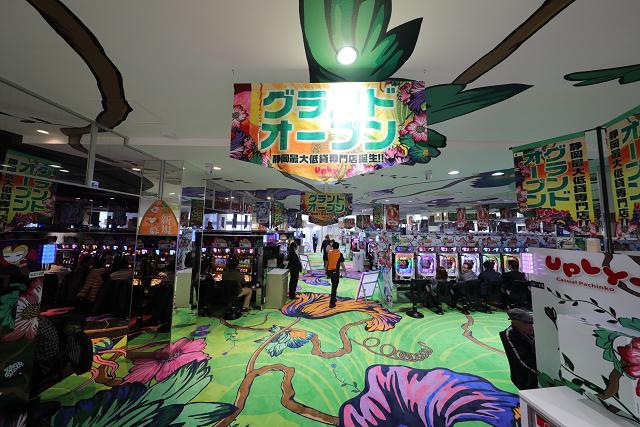 そしてパチスロも総勢39台のジャグラーシリーズ『マイジャグラーIII』『ニューアイムジャグラーEX‐KA』が交互に並ぶ円形島では「ジャグ連」三昧。Aタイプに負けず、A+ARTの話題沸騰『SLOTバジリスク~甲賀忍法帖~III』も大活性化中!勝利への登竜門「バジリスクチャンス」連発!頻発!!大勃発!!!