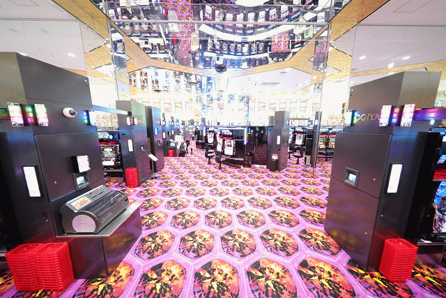 広大な中央通路は、まっすぐにパチスロコーナーへと続く。
