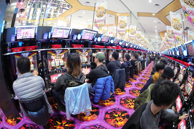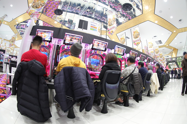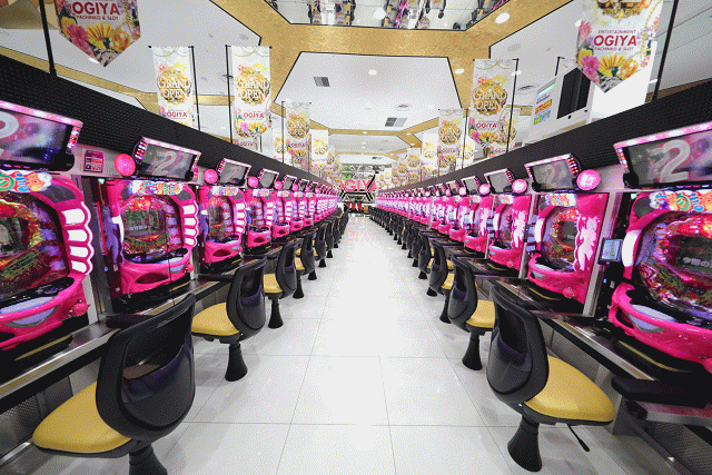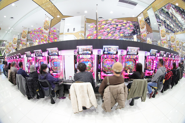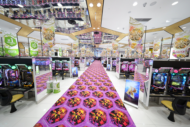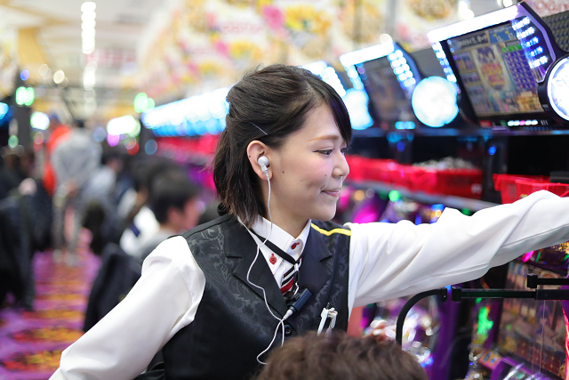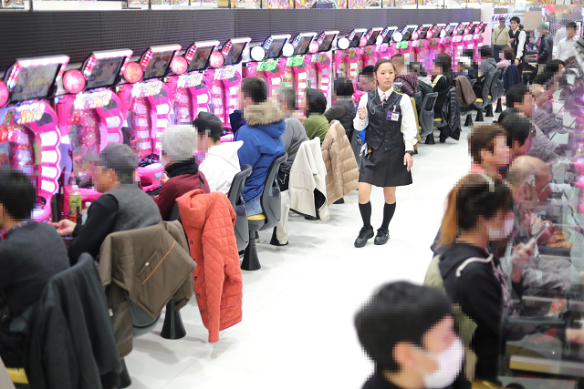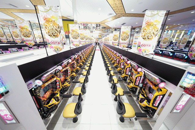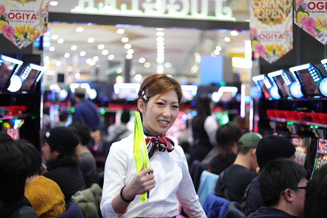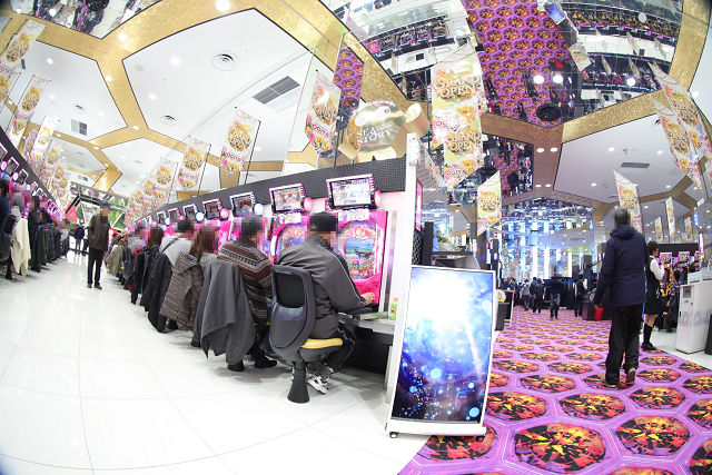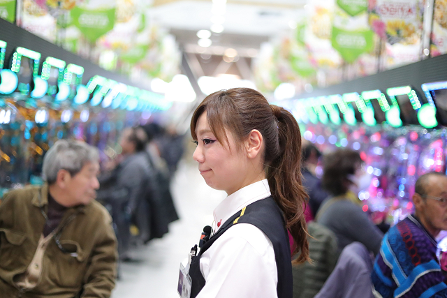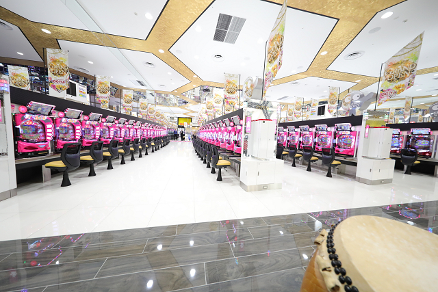 パチンコは全台各台計数機ので、通路横にお馴染みの玉箱の姿は無い。ファンはゆったりとした通路で行き来できるに違いない。