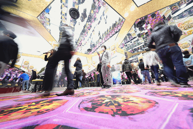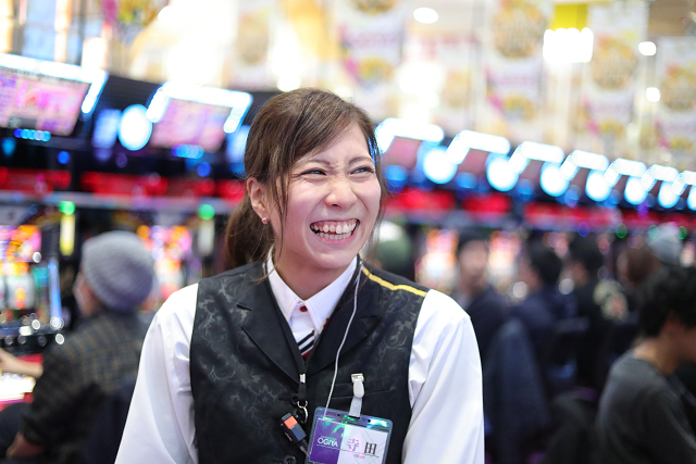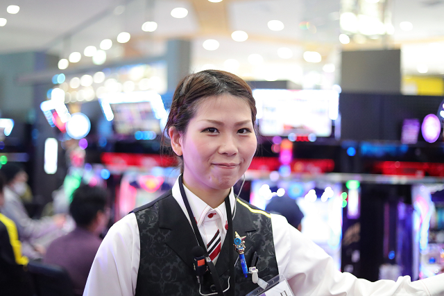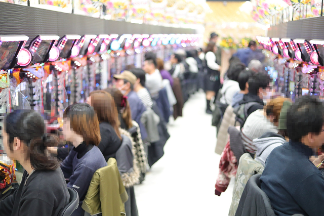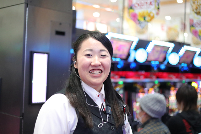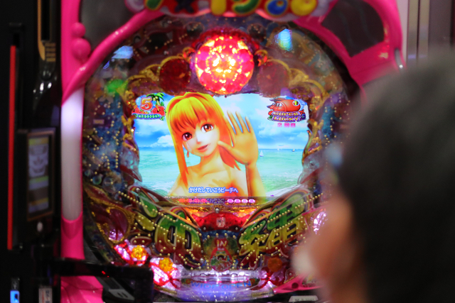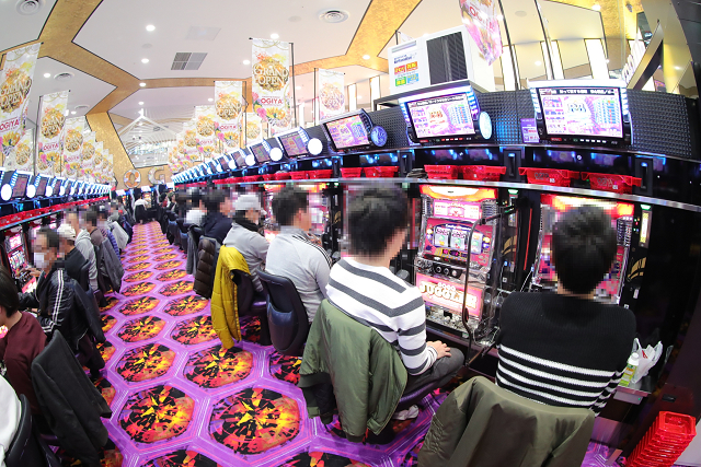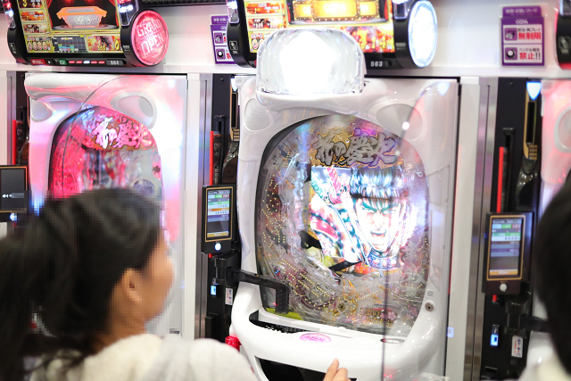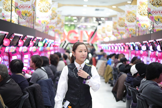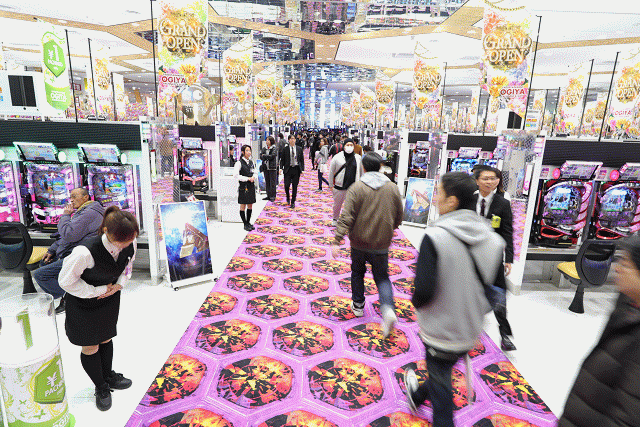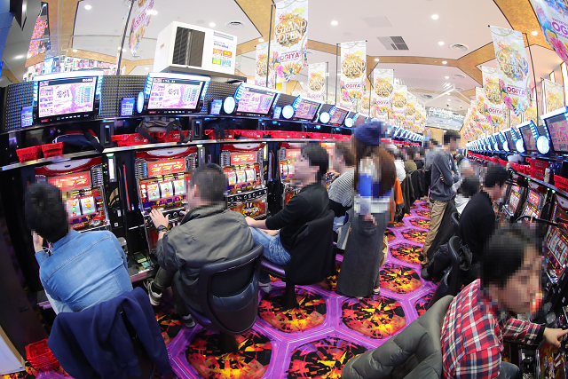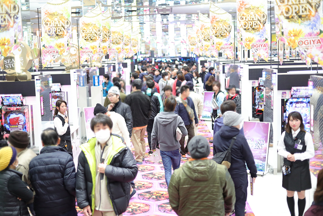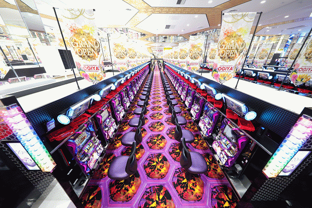 パチンコは全台各台計数機ので、通路横にお馴染みの玉箱の姿は無い。ファンはゆったりとした通路で行き来できるに違いない。