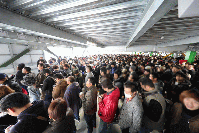 最後尾が確認できない人垣の中、スタッフがいよいよ入場の案内を叫ぶ。