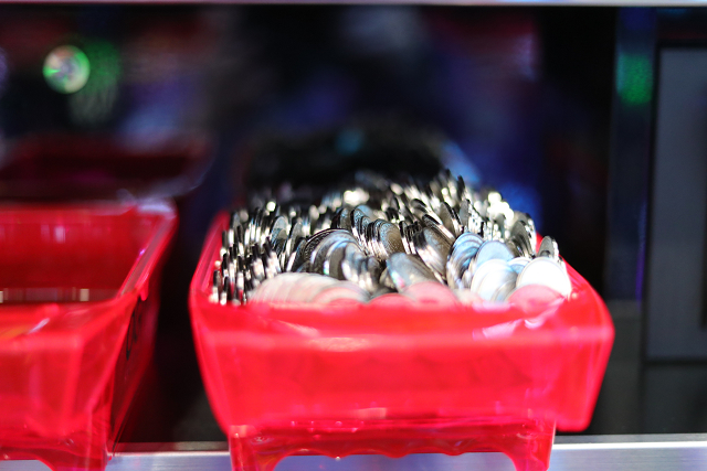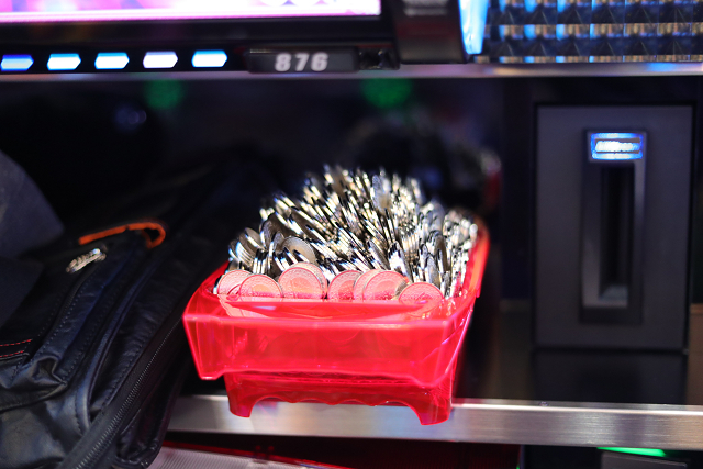 パチスロコーナーは、思う存分メダルを積めるので、一気にドル箱がひしめき合う!