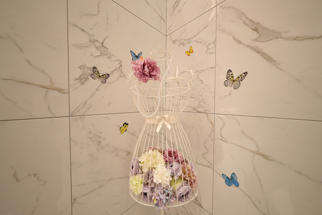 前回も視察した女性用トイレも、装飾がふんだんにちりばめられ、彩を与える。