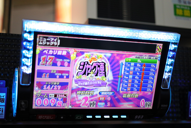 そしてパチスロは、『ニューアイムジャグラーEX-KA』43台、『マイジャグラーⅢ』37台『ゴーゴージャグラー 』35台、『ニューアイムジャグラーEXーKT』16台『ファンキージャグラー』16台と『ジャグラー』シリーズだけで、147台!