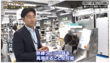 外食産業の人手不足に、調理ロボットという新たな解決策で注目を集める企業がある。ロボット技術で「食」の現場を変えようと挑戦するTechMagic㈱・白木裕士社長の歩みを追う。