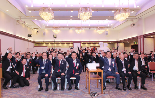 キング観光の入社式の模様。 キング観光は4月1日、名古屋市中村区の「ザ・ストリングホテル名古屋」で令和8年度新入社員入社式を開催した。今年度は31名の新入社員を迎え、国会議員や芸能界等からも来賓・特別ゲストを迎え、パーティー形式で新たな門出を祝った。 入社式では権田清代表取締役から「キング観光の明日