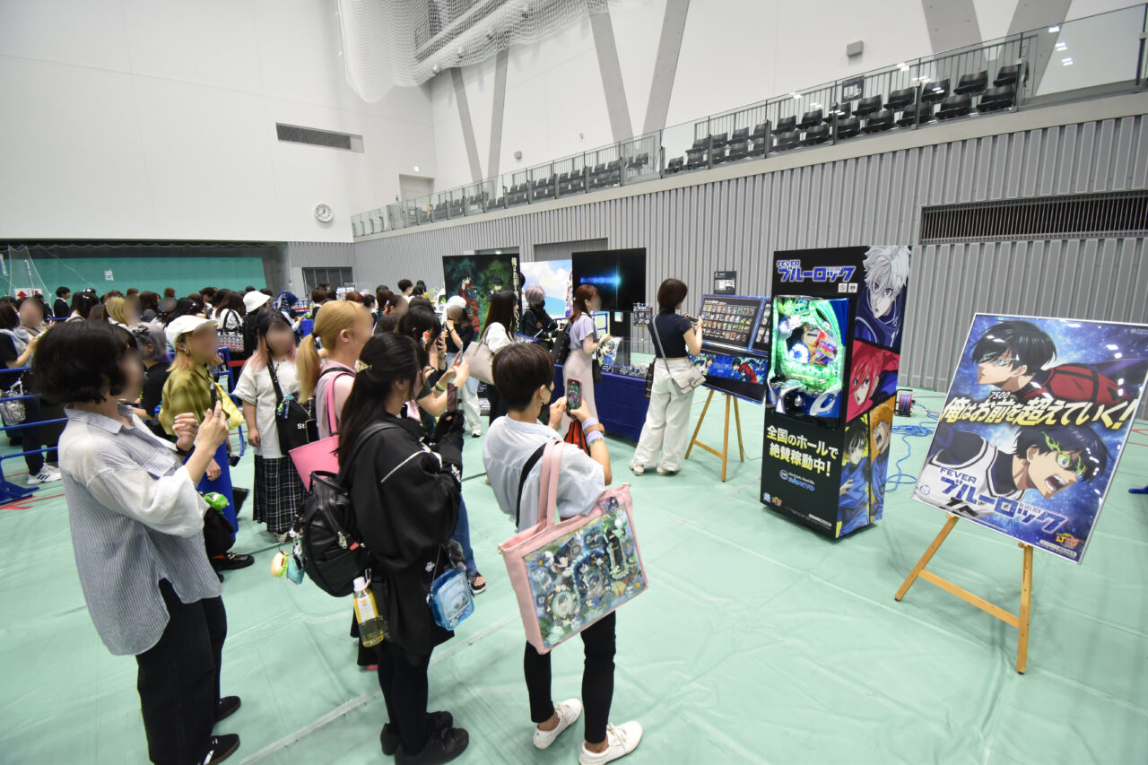 物販コーナーや等身大パネルを設置したフォトスポットなどが展開されたサブアリーナに「スマパチ フィーバーブルーロック ブース」を出展。実機とともに、ホールでしか手に入らないオリジナルグッズの展示も行い、多くの来場者が足を止めて動画・写真に収めていた。