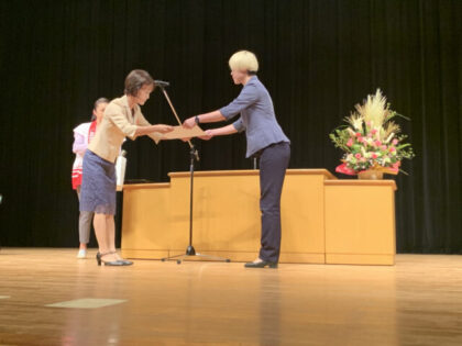授与式は9月30日、筑後市内の『サザンクス筑後』で開催された「令和7年度福祉活動実践者合同研修会(第61回 市民福祉のつどいとの合同企画)」の中で行われたもの。《筑後店》では、2013年からお客様より寄せられた端玉賞品(菓子類)を地元の福祉団体などに寄付しており、こうした継続的な活動が地域から高く評価された。