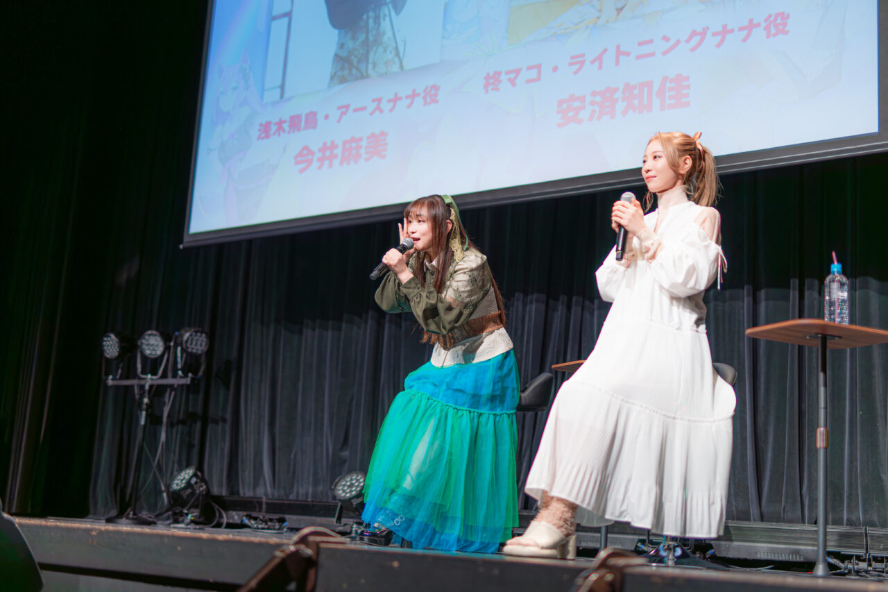 アニメ上映後のトークステージでは、浅木飛鳥(アースナナ)役の今井麻美さん、柊マコ(ライトニングナナ)役の安済知佳さんが登壇。同コンテンツに対する思い入れや、アフレコ時のエピソードトークを赤裸々に披露して会場を盛り上げた。トークステージ後は、シリーズ楽曲を歌唱するDaisy×Daisyさんが登場。シリーズの原点となっている楽曲「星空コネクション」を熱唱し、会場は一体となった。