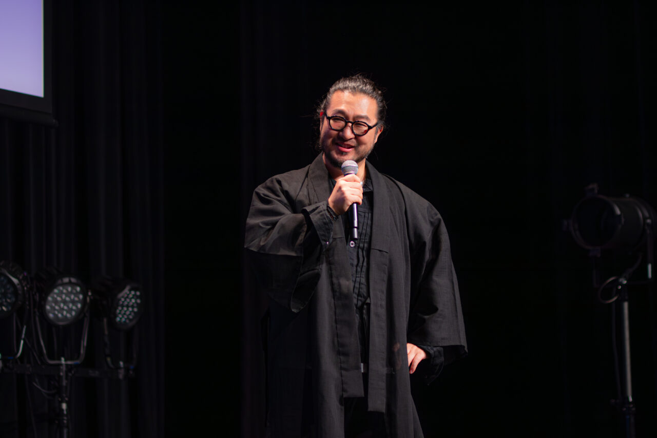 ファンに向けてメッセージを送った、カルミナ・佐藤圭一社長。