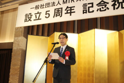 MIRAIぱちんこ産業連盟は11月12日、都内・上野の中華料理レストラン東天紅で「設立5年周年記念祝賀会」を開催。会場には約220人が参列し、節目を祝った。