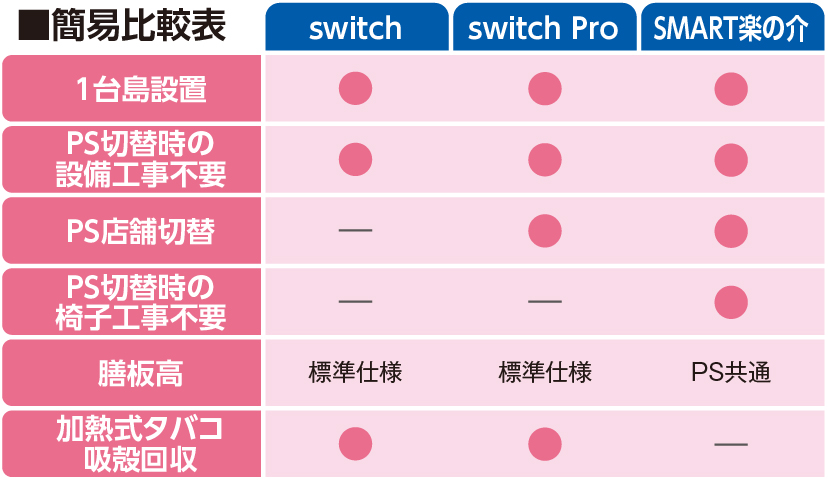 また、同店では『switch』も1BOX導入している。山田和幸店長は「『switch』『switch Pro』ともにスタイリッシュな印象。今後は、スタッフのみのP⇔S切り替えも有効策の一つとして視野に入れつつ、プロジェクトのさらなる充実を図りたい」と話す。