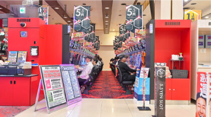 若年層を中心に高い支持を得る《マルハン小山千駄塚店》(栃木県小山市・台数927台/運営:㈱マルハン東日本カンパニー)。8月7日に大型リニューアルを実施し、スマート遊技機PS互換島『switch Pro』を導入した。