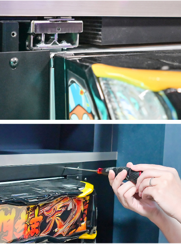 また、同製品は「台固定装置」を内蔵。遊技機の入替自体もビス止めなどの工事を必要としない。松村副支配人は「スタッフのみで入替え対応でき、例えば同一コンテンツのPとSを交互に配置するなど、新しい見せ方にも挑戦できます」と独自のアイデアも示した。