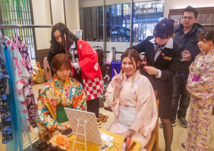経営する4棟のホテルは海外の利用者が9割以上。着付サービスなど日本の文化に触れてもらうイベントを毎日実施している。