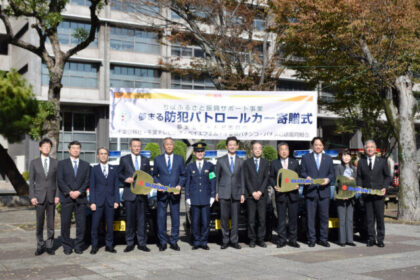 千葉県パチンコ・パチスロ店協同組合は11月7日、千葉県庁(千葉市中央区・羽衣公園内)において、「夢まるふぁんど防犯パトロールカー寄贈式」を実施し、本年度は、鎌ケ谷市、浦安市、大網白里市の3市に対し、防犯パトロールカー各1台を寄贈した。