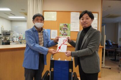 プローバグループの特定NPO法人フォルツァプローバは12月17日、障がい者支援活動の一環として、きょうされん広島県支部に対し10万円の寄付と車いす1台を寄贈した。