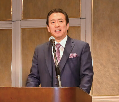 所信を述べる木村義雄参議院議員。 全日本遊技産業政治連盟は2月12日、東京・市ヶ谷で参議院議員・木村義雄氏の議員就任に伴う報告会と記者会見を開催した。木村議員は2022年7月の第26回参議院選挙(自民党比例区)において、パチンコ業界の支援を受けて立候補しており、今回の議席獲得を受けて、業界関係者らの