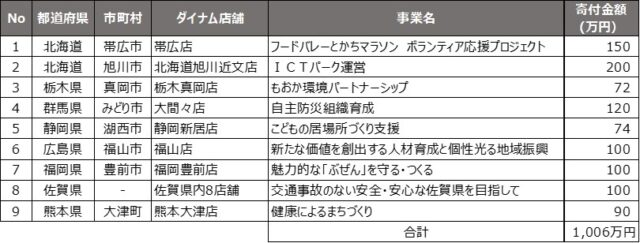 ダイナムは2月25日、企業版ふるさと納税(地方創生応援税制)を通じて、1道7県8都市に総額10,060,300円を寄付したと発表した。同社は全国46都道府県でパチンコホールを展開しており、地域課題の解決や地方創生につながる取り組みを支援する目的で実施した。