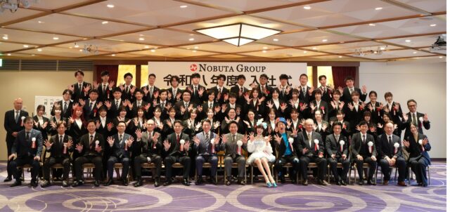 49名が入社した延田エンタープライズの入社式の模様。