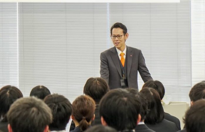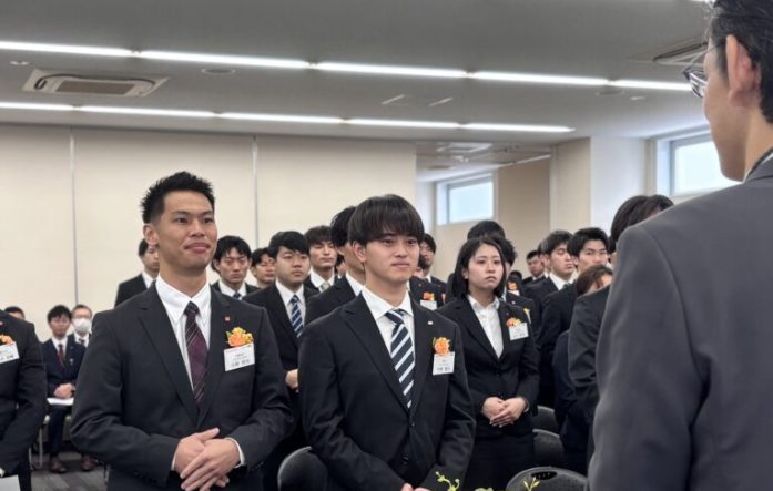 当日は、木下春雄代表取締役会長ならびに前澤酉匡代表取締役社長が祝辞を述べたほか、新入社員一人ひとりに配属先店舗の辞令を交付した。式の最後には新入社員代表による決意表明が行われ、社会人生活をスタートさせた。