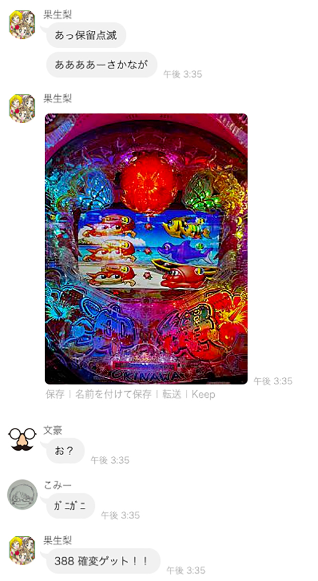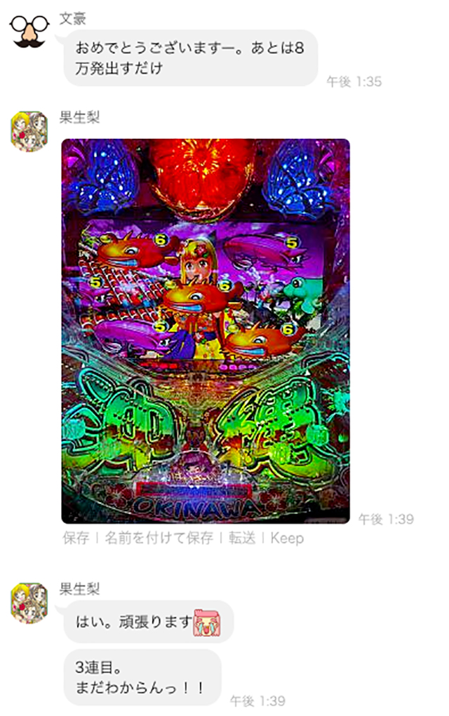 とんでもないヒキとは何なのか。果生梨の台より良さそうな『沖海』を打って負けたという、ゲンが悪いみさみさの報告を受けた時点で残り2箱。