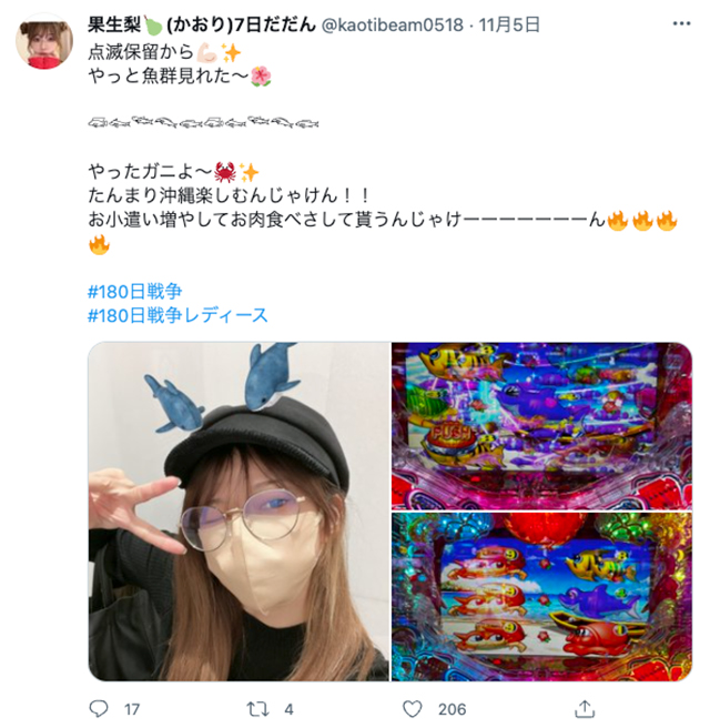 冒頭でも軽く触れましたが、果生梨は今回の参戦に向けて、並々ならぬ気合で実戦エリアとホール選びに時間をかけていました。