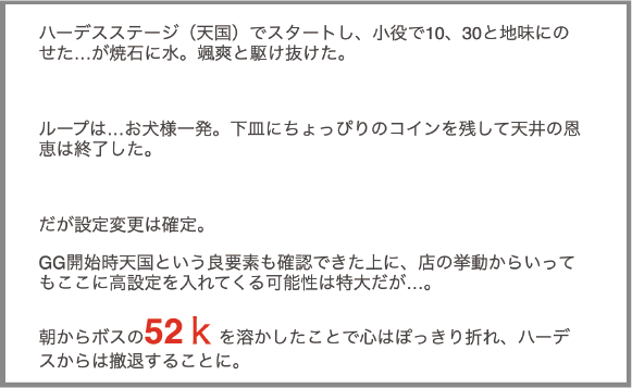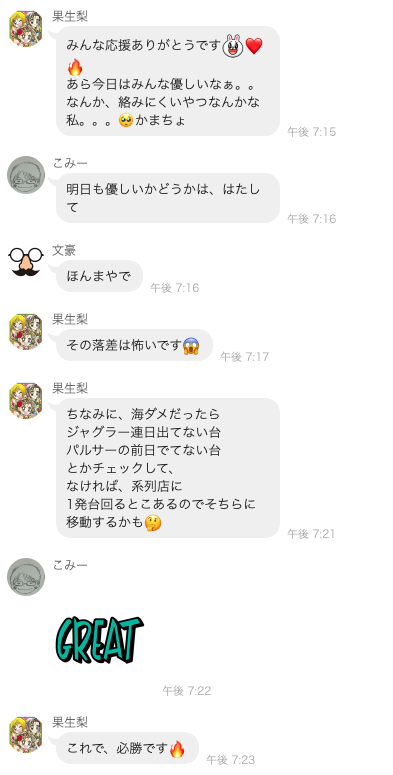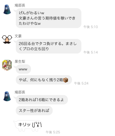 そこからハマる度に回転率も下がってきてしまい、報告するようなアツい展開も特になく、通知がうるさいグループLINEもパタリと静かに。