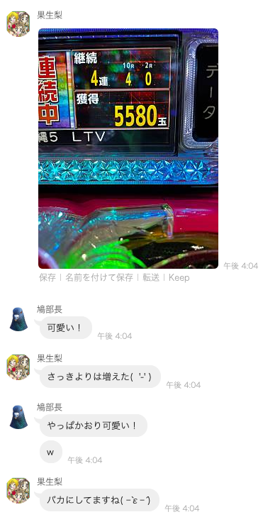 期待ほど連チャンは伸びませんでしたが、ちょっと出玉が増えているので鳩部長もご機嫌。