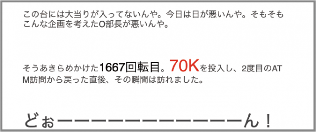 8万発のプレッシャーに耐えかねたのか、何も起こらないまま追加投資。そう簡単には当たりません。